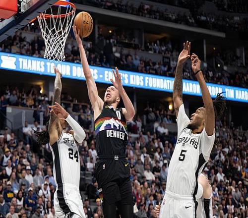 在此前的一場(chǎng)NBA常規(guī)賽焦點(diǎn)戰(zhàn)中,主場(chǎng)作戰(zhàn)的丹佛掘金經(jīng)過加時(shí)苦戰(zhàn)后以136比134戰(zhàn)勝了圣安東尼奧馬刺。本場(chǎng)比賽后,豪取8連勝的掘金的戰(zhàn)績(jī)提升到了50勝28負(fù),繼續(xù)排名西部第4位,與身前的洛杉磯湖人的勝場(chǎng)差為半場(chǎng),與身后的休斯頓火箭的勝場(chǎng)差為1.5場(chǎng);而結(jié)束了11連勝的馬刺的戰(zhàn)績(jī)則是下滑到了59勝19負(fù),繼續(xù)排名西部第2位,與身前的俄克拉荷馬城雷霆的勝場(chǎng)差為2.5場(chǎng),與身后的湖人的勝場(chǎng)差為8.5場(chǎng)。