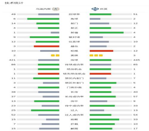 烏迪內斯00科莫,場面火爆,兩隊5人染黃 懂球帝 2026-04-07 08:53:58 北京時間4月6日,意大利足球頂級聯賽第31輪展開較量,烏迪內斯坐鎮主場迎來科莫的挑戰。全場比賽結束,雙方均未攻破對方球門,最終烏迪內斯0-0戰平科莫。球隊陣容技術統計科莫免費觀看_烏迪內斯免費觀看_意大利足球免費觀看_科莫高清在線_烏迪內斯高清在線_意大利足球高清在線 科莫 烏迪內斯 意大利足球 上一篇: 馬切吉亞尼:國米本可以踢羅馬72頂級球員就是能解決問題 下一篇: 貝爾戈米:勞塔羅的重要性顯露無疑國米還得再贏5場才能奪冠