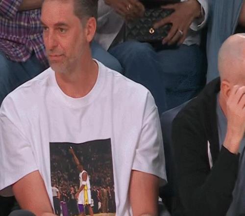 細(xì)節(jié)滿(mǎn)滿(mǎn)!加索爾身穿印有科比海報(bào)的T恤場(chǎng)邊觀(guān)戰(zhàn)