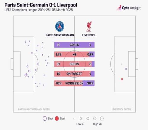 一年之前,利物浦以歐冠聯賽輪第一的身份出戰經過附加賽才跌跌撞撞晉級的巴黎圣日爾曼,結果首回合客場射門2比27的劣勢下,居然取得1球小勝。