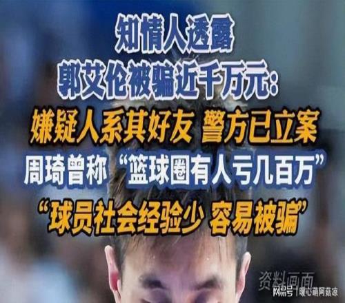 “郭艾倫遭詐騙,涉案金額接近千萬”。