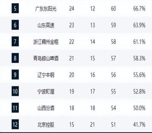 6-11名的球隊彼此僅相差1個勝場,競爭同樣白熱化。浙江稠州近期豪取6連勝,狀態神勇,不反超山東的可能。青島隊本輪被廣東逆轉,主帥劉維偉賽后怒斥外援,球隊內部氛圍令人擔憂。遼寧本鋼則迎來兩連勝,大外援融入效果顯著,實力有所提升,下場對陣青島的比賽將是關鍵卡位戰。寧波町渥與山西汾酒均遭遇兩連敗,狀態起伏較大,寧波受限于硬實力,山西則面臨教練組執教能力的質疑。