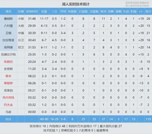 詹姆斯26分8板11助2斷、艾頓21分5板1助、布朗尼10分;波杰和內特-威廉姆斯各砍17分!湖人和火箭都是51勝29負,湖人憑借相互交手的優勢,奪回了西部第四。湖人最后兩個對手是太陽和爵士,火箭最后兩場是森林狼和灰熊。