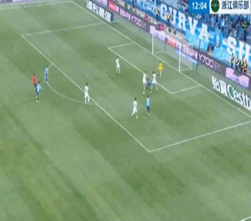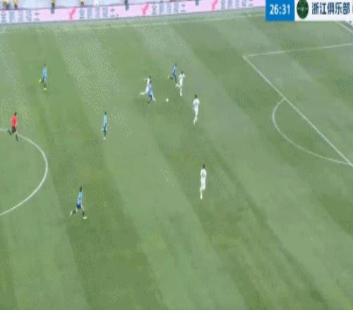 第13分鐘,阿奇姆彭禁區內回做,無人盯防的馮勁勁射擊中橫梁。隨后,馮勁禁區前直塞,阿奇姆彭突入禁區小角度勁射擊中邊網。