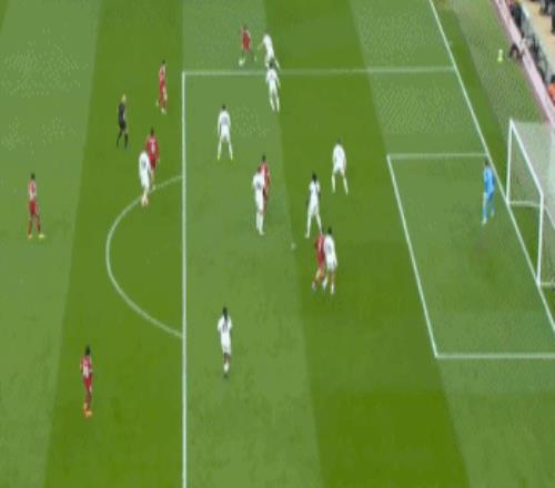 第51分鐘,薩拉赫精準(zhǔn)直塞,弗林蓬插上傳中,加克波門前絕佳機(jī)會(huì),處理球過于拖沓被化解。
