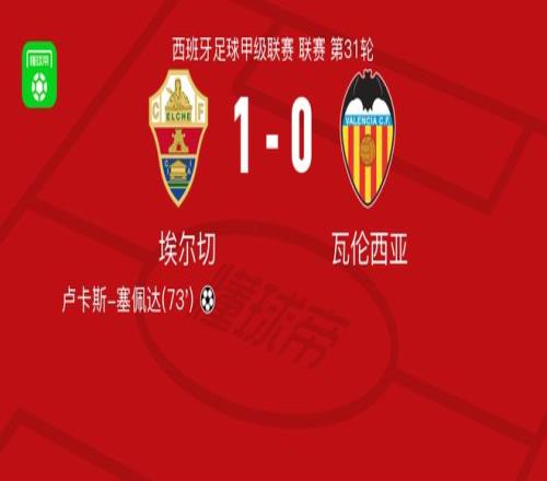 北京時間4月11日西班牙足球甲級聯賽 聯賽 第31輪,埃爾切主場對陣瓦倫西亞。埃爾切盧卡斯-塞佩達破門。最終比分埃爾切 1-0 瓦倫西亞。