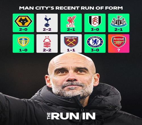 英超爭冠進入最后沖刺,曼城把懸念又續上了。過去9輪聯賽,他們一場沒輸,硬是把和阿森納的分差從兩位數咬到了6分。更微妙的是,瓜迪奧拉手里還攥著一場補賽——這相當于銀行里存了一筆定期,隨時可以取出來兌現。