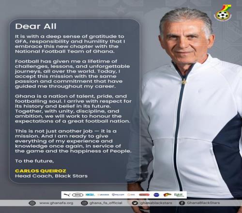 奎羅斯寫道:“致親愛的每一位:我懷著對加納足協深切的感激之情,以及沉重的責任感與謙遜之心,開啟了執教加納國家隊的這一新篇章。足球賜予了我遍布全球的挑戰、教訓和難忘旅程。今天,我帶著指引我整個職業生涯的同樣激情與承諾,接受了這項使命。加納是一個充滿天賦、尊嚴和足球靈魂的國家。我帶著對其歷史的尊重和對其未來的信念而來。”