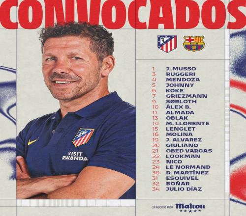 前鋒:7-格列茲曼、9-瑟爾洛特、11-阿爾馬達、19-阿爾瓦雷斯、20-朱利亞諾·西蒙尼、22-盧克曼、23-岡薩雷斯、34-胡里奧·迪亞斯