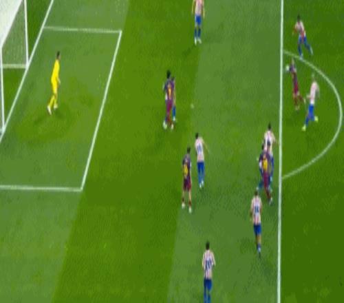 第9分鐘,亞馬爾反擊當中送出妙傳,朗格萊造越位失敗,奧爾莫再次獲得機會,單刀挑射被穆索化解,馬競門前風聲鶴唳。