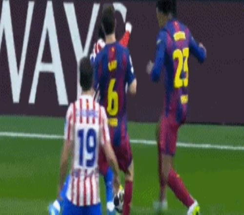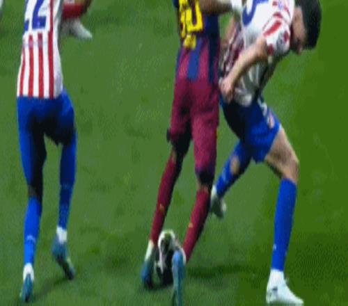 第26分鐘,亞馬爾右路突破,外腳背傳中恰到好處,費爾明飛身沖頂,穆索再次回敬關鍵撲救。值得一提的是,穆索的鞋底踢到費爾明的頭部,后者當場血流如注。