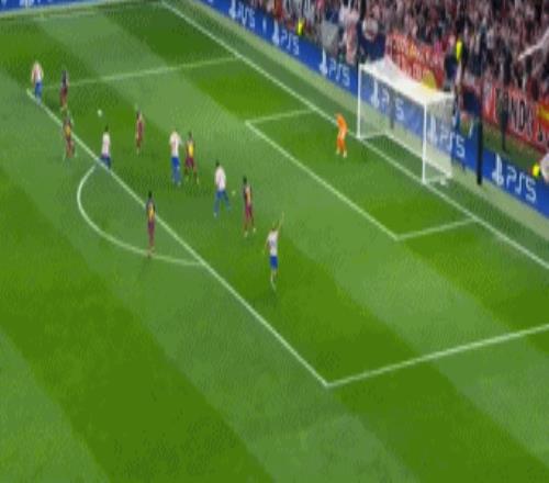 第22分鐘,格列茲曼斜傳左路,盧克曼突破倒三角傳中,格列茲曼搶點推射,赫拉德-馬丁關鍵攔截。