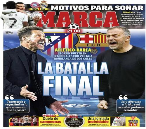 4月14日,西班牙6家體育報(bào)紙頭版被同一畫面霸占——馬競vs巴薩,歐冠1/4決賽次回合。這不是普通的淘汰賽,而是14天內(nèi)的第三場直接對話。當(dāng)足球賽程壓縮到這種密度,球迷的注意力經(jīng)濟(jì)正在被重新定價。