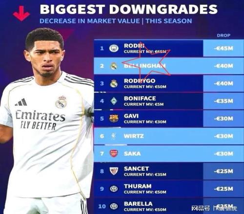 貝林厄姆身價下降4000萬歐,當前身價1.4億歐