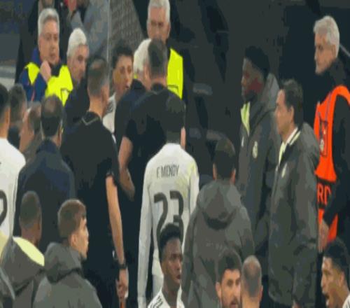 賽后,不甘心出局的維尼修斯、貝林厄姆、居萊爾等皇馬球員,憤怒追著本場裁判組成員討說法。