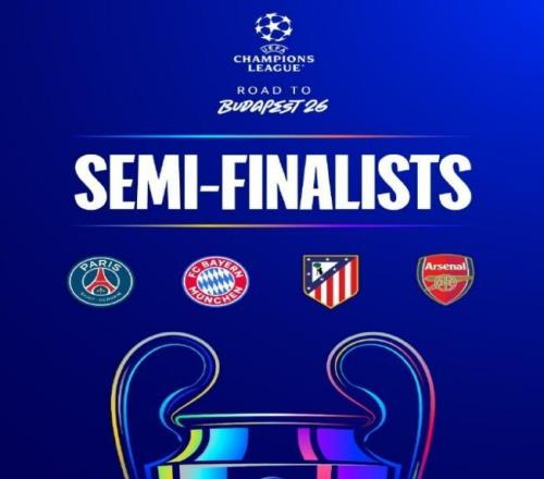 至此本賽季歐冠四強全部出爐,英超、西甲、法甲和德甲各有一支隊伍入圍。半決賽拜仁將同巴黎 圣日耳曼交手,阿森納將會面對馬德里競技隊。兩回合半決賽分別于4月29/30日以及5月6/7日上演。