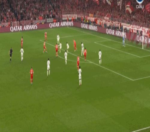 上半場比賽2隊便進入了針鋒對麥芒的節奏;開場僅35秒時間,經驗豐富的諾伊爾便出現了后場低級的傳球失誤,居萊爾笑納大禮遠距離吊射空門得手收獲自己的歐冠處子球,1:0,總比分2:2!這是皇馬隊史歐冠最快進球紀錄。第6分鐘,基米希角球旋入禁區,帕夫洛維奇近距離頭球攻門得手,1:1,總比分2:3! 雙方都上演閃擊戰。