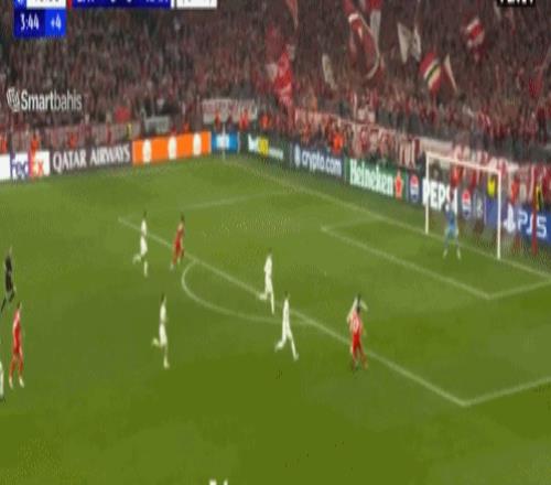 第95分鐘,拜仁踢出快速反擊,身價1.4億的奧利塞單挑皇馬后防線,內切兜射世界波,比分定格在4-3!
