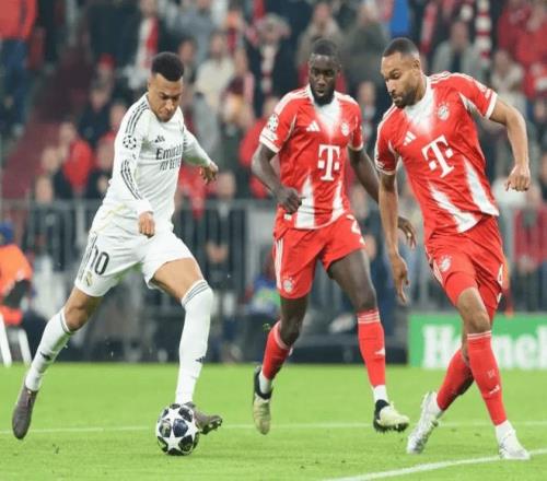 比賽開場僅35秒,諾伊爾回傳失誤,居萊爾斷球吊射空門得手,安聯瞬間死寂。7分鐘后帕夫洛維奇頭槌扳平;29分鐘,居萊爾任意球直掛死角,梅開二度;38分鐘凱恩冷靜推射反超;42分鐘姆巴佩單刀破門,皇馬3-2領先走進更衣室——上半場,雙方你來我往,攻防轉換快如閃電,堪稱近年歐冠最刺激半場。