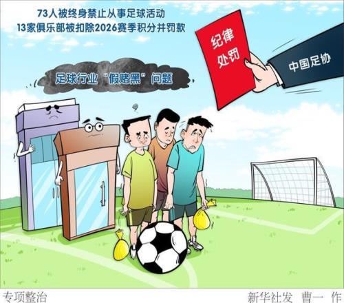 新華社圖表,北京,2026年1月29日 1月29日,公安部、國家體育總局、中國足協在北京聯合召開足球行業“假賭黑”問題專項整治行動新聞發布會,通報公安機關依法嚴肅查處足球領域賭球、假球等違法犯罪情況,以及中國足協對涉案人員和俱樂部的紀律處罰情況。陳戌源、李鐵等73人被終身禁止從事足球活動,天津津門虎等13家俱樂部被扣除2026賽季積分并罰款。 新華社發 曹一 作