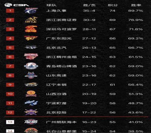 CBA常規賽前39輪的比賽已經全部完賽了,這一輪的比賽對于季后賽的卡位和爭奪都非常關鍵,目前常規賽還有最后三輪的比賽,前十一支球隊已經全部確認,現在北控和廣州隊之間第十二名的爭奪還是非常激烈,肯定是要打到最后一輪才能最終確定季后賽的隊伍!