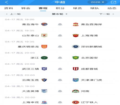 體育播報(bào)4月17日宣 中超第6輪將于今晚拉開(kāi)帷幕,8場(chǎng)比賽全部在晚間進(jìn)行,其中有6場(chǎng)今晚開(kāi)球,2場(chǎng)明晚開(kāi)球。