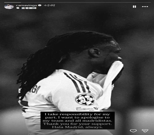 皇馬在歐冠1/4決賽被拜仁淘汰,卡馬文加次回合最后時刻的染紅無疑是皇馬出局的主要原因之一。賽后,卡馬文加在社媒致歉。