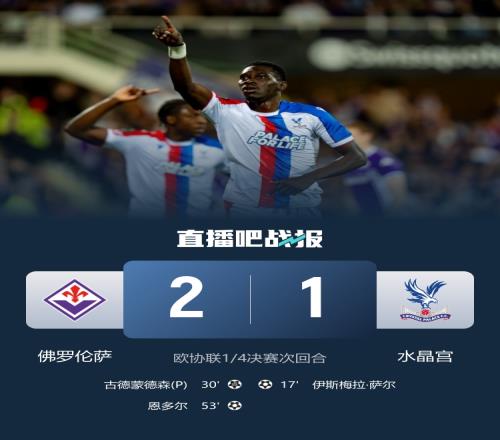 伊斯梅拉·薩爾破門,曼德拉戈拉造點,古德蒙德森點射,恩多爾制勝;水晶宮1-2佛羅倫薩總比分4-2晉級歐協聯四強,將對陣頓涅茨克礦工。