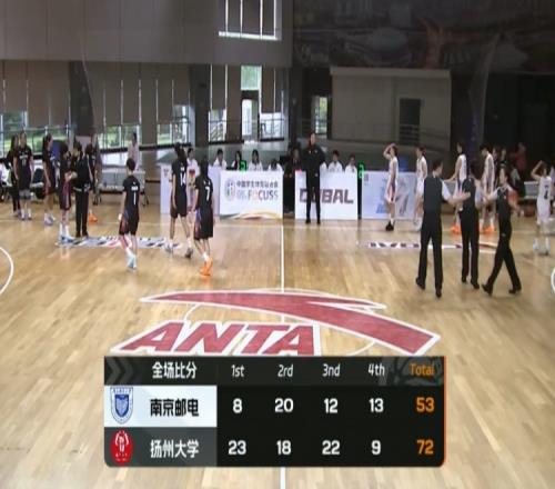 末節決戰,雙方上來進攻端命中率都有下降,打了半節各自連5分都沒得到。劉玲暗訪追到20分以內分差,周昕怡強打2+1后楊逍雨三分再進,揚州大學保持住20分以上領先,最終揚州大學72-53輕取南京郵電。