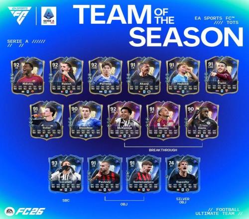 北京時間4月17日,EA SPORTS官方公布了FC26意甲賽季最佳陣容的提名球員,邁尼昂、布雷默、莫德里奇、麥克托米奈、尼科-帕斯、凱南-伊爾迪茲、勞塔羅以及皮奧-埃斯波西托入圍,國際米蘭和AC米蘭分別都有5人上榜,尤文圖斯4人,那不勒斯僅2人。