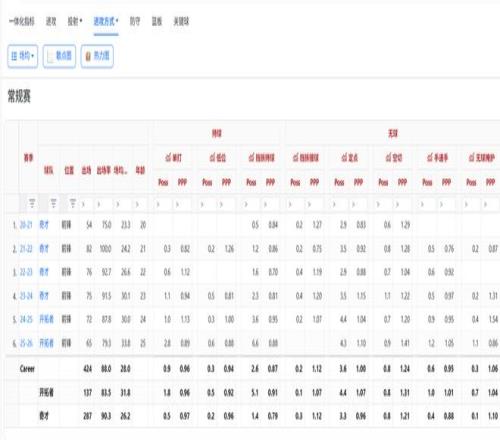 同樣在奇才最后一季,阿夫迪亞場均能送出8.7個潛在助攻,單回合得分率為1.08分高于他的真實出手得分。那一季阿夫迪亞的創造/終結比為0.63,而本賽季比值為0.68。兩項數據差別不大,這說明早在23-24賽季阿夫迪亞就已經是潛在持球大核,只不過奇才沒給他足夠施展空間。奇才這么多年穩定的爛不是沒道理的,給他一個好球員他都用不出來。