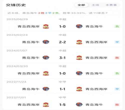 賽前青島海牛5輪1勝1平3負,負3分暫居中超積分榜倒數第二;青島西海岸戰績相同,但因未被罰分積4分排名第七。