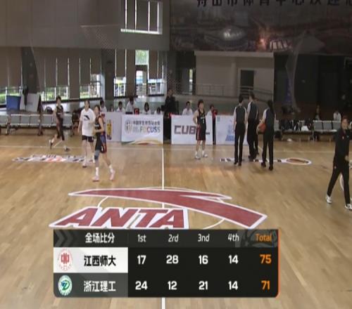 末節(jié)之爭浙江理工再接再厲,蘇靖妍開局率先拿分,鮑一諾隨后外線開火命中三分,浙江理工送上7-2的攻勢反超比分。不過關(guān)鍵時刻江西師大及時作出回應(yīng),嚴(yán)喜平連拿4分奪回領(lǐng)先,許嵐清則再外線命中三分,江西師大重新建立起5分優(yōu)勢奠定勝局,最后時刻歐智利的進(jìn)球幫助浙江理工追至2分但為時已晚。最終,江西師范大學(xué)75-71擊敗浙江理工大學(xué)拿下比賽。