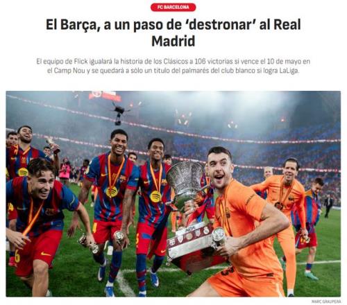 《阿斯報》指出,5月10日的西甲國家德比,將有重要意義。從國家德比勝場數來看,皇馬106勝,巴薩105勝,還有52次打平。如果巴薩擊敗皇馬,兩隊在國家德比的勝場數將打成106-106!
