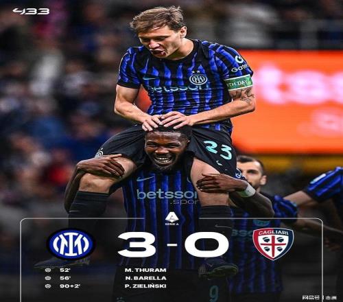 意甲第33輪,國際米蘭主場3-0擊敗卡利亞里,多賽一場領先排名第二的那不勒斯12分。埃斯波西托兜射造險,圖拉姆、巴雷拉先后破門,澤林斯基補時階段再下一城。
