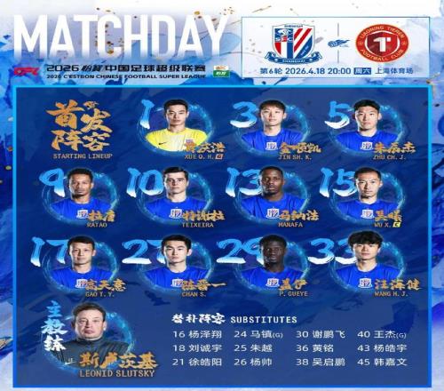 本場(chǎng)比賽,斯盧茨基排出了一套4-2-3-1的陣容,薛慶浩出任首發(fā)門將;朱辰杰和金順凱坐鎮(zhèn)中后衛(wèi),陳晉一與馬納法分居左右;汪海健和隊(duì)長(zhǎng)吳曦搭檔雙后腰;高天意、特謝拉、拉唐以及蓋伊組成前場(chǎng)攻擊群。