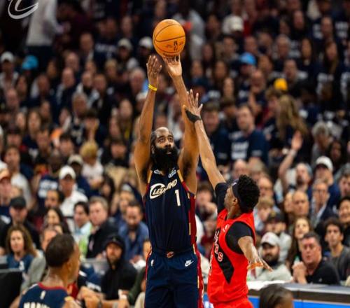 莫布里抓到球飛扣,哈登造殺傷+米切爾急停三分打停猛龍!中段哈登拋投打進后,季后賽得分超越拉里伯德,升至歷史第13!隨后哈登再中撤步三分,不過英格拉姆連續單打,聯合巴恩斯轟三分球,猛龍控制住節奏!節末米切爾和梅里爾連續造犯規,米切爾轟三分,斯特魯斯連拿4分,第一節騎士35-31反超!進入第二節,米切爾續上三分球,巴雷特連續單打回應,配合謝德的三分球,猛龍很快追平。中段莫布里順下劈扣,哈登迎著巴恩斯撤步三分再中,謝德繼續轟三分,哈登喂餅埃利斯回應3+1!