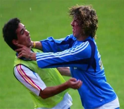 2005年10月,西班牙國家隊的一場內部分隊對抗賽中,被分在替補一方的維森特,頻繁與主力一方的鐵衛普約爾對位。本來就憋了一肚子火的維森特,覺得普約爾防守動作太大,當場就炸毛了。兩人在訓練場上直接爆發了激烈的肢體沖突,好家伙,要不是勞爾等老大哥趕緊跑過來把兩人拉開,這事兒真不知道怎么收場。