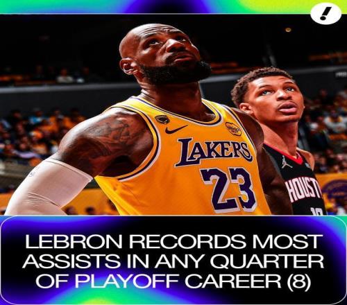 作為球隊的進攻大腦,詹姆斯在第一節就奠定了基調。配合湖人百發百中的中投表現,詹姆斯首節送出8次助攻,創造個人生涯季后賽單節助攻紀錄。在以防守著稱的火箭面前,湖人首發5人輕松寫意地在各個位置發炮,全隊前15個進球有14個來自助攻,襯托著火箭的年輕小伙子們如同莽夫。