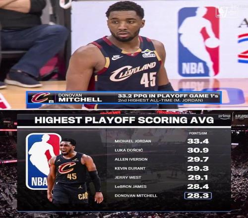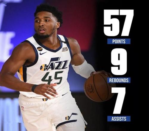 57分至今是現役球員的季后賽最高分,同時也是NBA季后賽歷史第三高分和G1歷史最高分,注意,當時的米切爾才三年級而已。