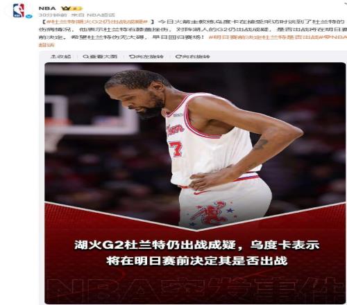 從心理層面看,杜蘭特的復出意愿極為強烈。他曾公開表示:“我不會讓球隊一個人扛著打。”在G1失利后,他在社交媒體上僅發布一張訓練照,配文:“明天,不是結束,是開始。”這句話迅速在火箭球迷中刷屏,成為G2的精神圖騰。