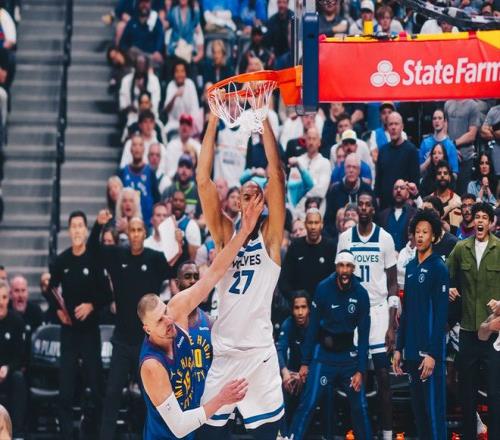 自約基奇拿到MVP,站在NBA之巔后,我們很少用低迷來形容他,大部分時間都是恐怖的高階數據,夸張的場上影響力。但今天,面對昔日最佳防守球員戈貝爾,約基奇沒能支棱起來。森林狼不斷給約基奇上對抗,消耗他的體力,效果顯而易見。下半場比賽,兩隊展現出季后賽的對抗強度,比分很接近,誰也沒有占到便宜。但關鍵時刻,戈貝爾在約基奇頭上強行摘板,然后強行補扣得手,讓掘金隊主場瞬間變得鴉雀無聲。還沒完,緊接著迪溫琴佐三分命中,幾乎殺死比賽懸念!不過約基奇很快找回場子,迎著戈貝爾隔扣得手,將一整場的憋屈釋放出來!