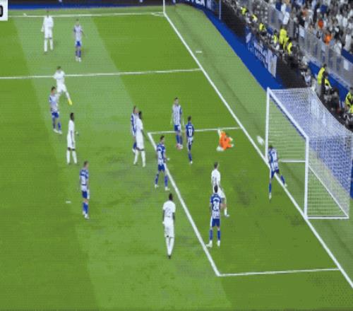 第49分鐘,皇馬獲得角球,瓊阿梅尼俯身沖頂,門將將球撲出,貝林厄姆的頭球補(bǔ)射砸在球網(wǎng)上方。