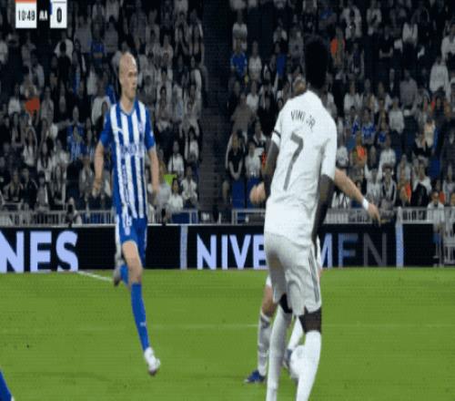 第10分鐘,居萊爾送出直塞,維尼修斯前插,希維拉果斷出擊,用鏟球化解險(xiǎn)情。
