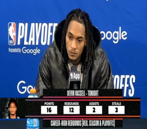 體育播報(bào)4月22日宣 NBA季后賽,馬刺103-106惜敗開拓者,大比分1-1戰(zhàn)平。賽后德文·瓦塞爾接受了媒體采訪,以下為采訪全文。