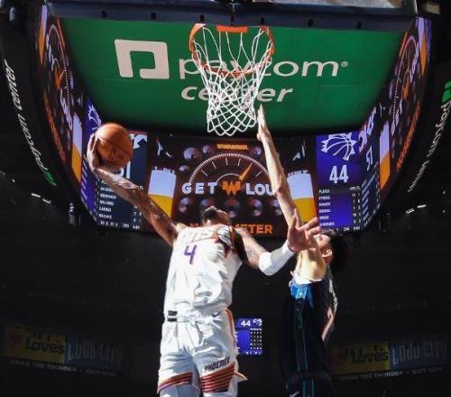 北京時間4月23日,雷霆與太陽的系列賽第二戰繼續在俄克拉荷馬進行。太陽在上半場比賽打出了不錯的攻防強度,僅僅落后著8分進入到下半場比賽。