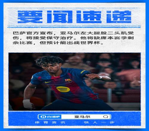 體育播報04月24日宣 亞馬爾在上輪西甲中罰入點球后傷退,賽后被檢查出大腿股二頭肌受傷,賽季報銷。