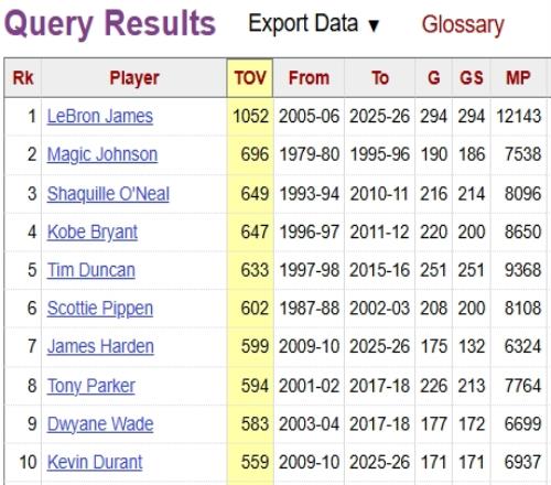 略顯尷尬!季后賽失誤數歷史前十中只有哈登沒冠軍 BBR 2026-04-24 20:54:40 體育播報04月24日宣 首輪系列賽G3,騎士104-126不敵猛龍大比分被扳成2-1。本場比賽哈登出戰33分鐘,出現了多達8次失誤,正負值-17。據統計,哈登季后賽生涯失誤數來到607次,超越皮蓬,上升至NBA歷史第六位;并且,哈登還是季后賽生涯失誤數歷史前十里,唯一沒有總冠軍的球員,其他人中,冠軍最少的是第十的杜蘭特的2冠。圖中數據截至今日賽前 籃球免費觀看_NBA免費觀看_哈登免費觀看_籃球高清在線_NBA高清在線_哈登高清在線 籃球 NBA 哈登 騎士 湖人 馬刺 熱火 詹姆斯 韋德 鄧肯 科比 火箭 杜蘭特 上一篇: 誰能想到首輪打到現在只剩雷霆&湖人有可能橫掃對手! 下一篇: 賴著不走27歲球員狂鉆NCAA規則空子即將轉校開啟大九賽季