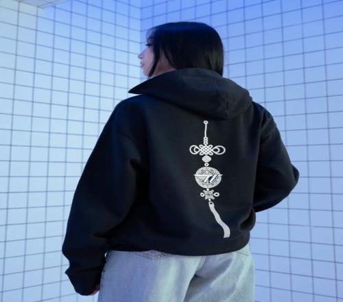 這款衛衣融合韓國傳統裝飾工藝底蘊與醒目的 T1 品牌標識,將傳統國風美學與潮流電競元素結合,為偏愛文化底蘊 + 街頭潮流風格的粉絲,打造兼具高級質感與層次穿搭效果。