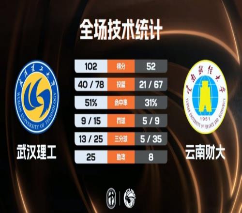 末節比賽,云南財大仍無法獲得任何縮小分差的機會,分差反而被武漢理工擴大到五十分,比賽徹底失去懸念,最終武漢理工大勝云南財大成功晉級。